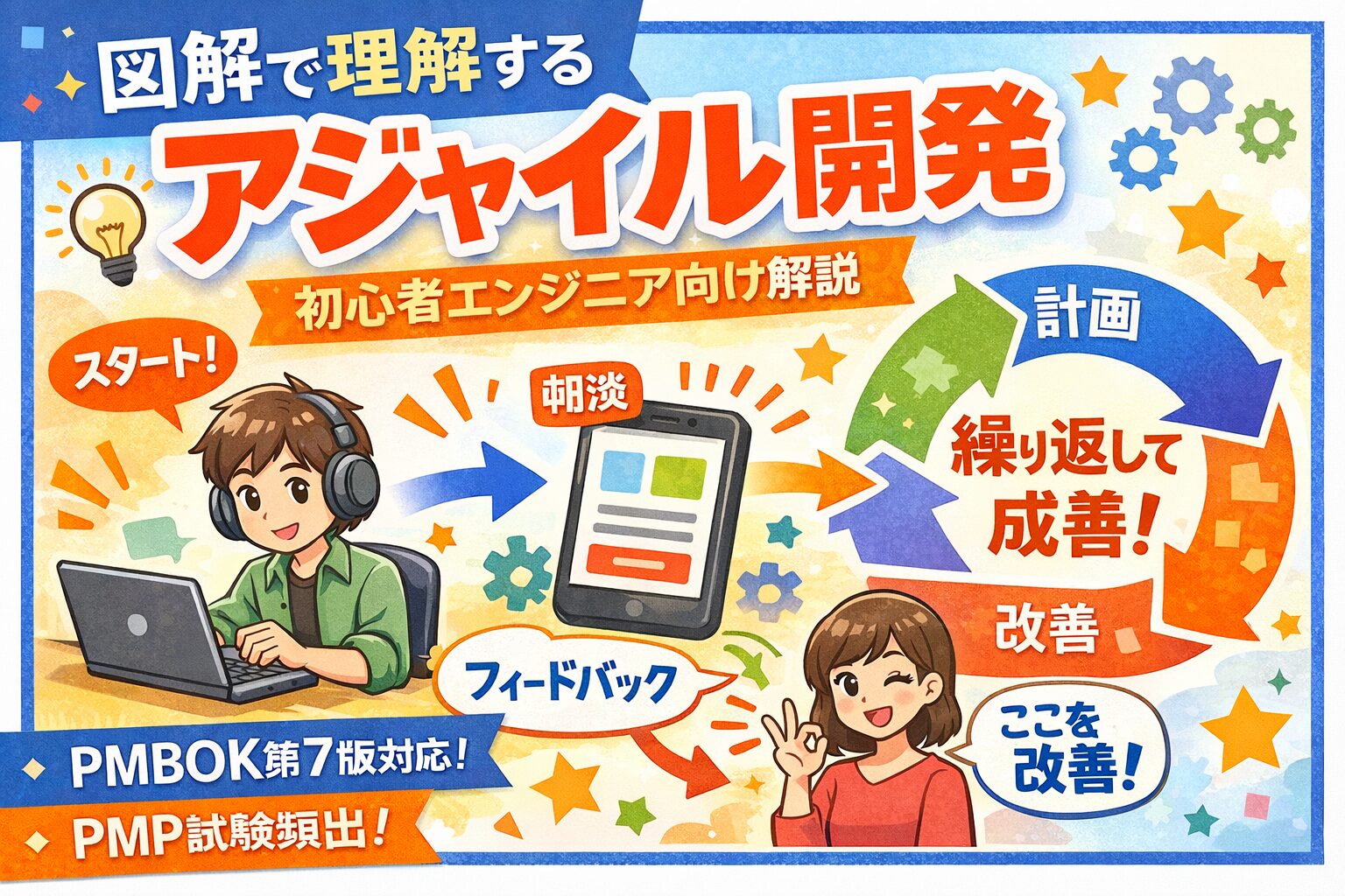 この記事では、アジャイル開発をまったく知らないエンジニア向けに、具体例を交えながらわかりやすく解説します。また最近のプロジェクト管理の標準書である PMBOK第7版 においてもアジャイルが大きく取り上げられ、PMP試験でも出題されるため、キャリア的にも押さえておくべき内容です。